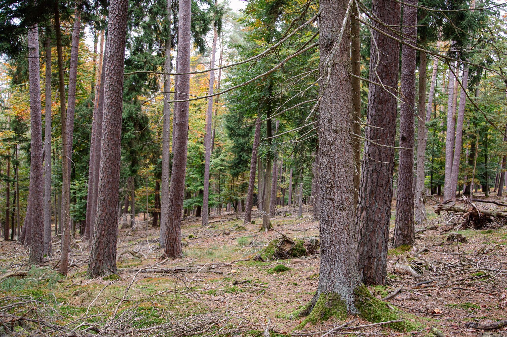 Im Klimaschutzprojekt Erlenhof werden auf rund 200 Hektar nadelholzdominierte Bestände, überwiegend Douglasie, Kiefer und Fichte, in klima- und standortangepasste Mischwälder umgebaut. Der Fokus liegt dabei auf der Förderung der Naturverjüngung und der Einbringung standortgerechter Laubbaumarten, um die ökologische Stabilität und Artenvielfalt zu erhöhen.